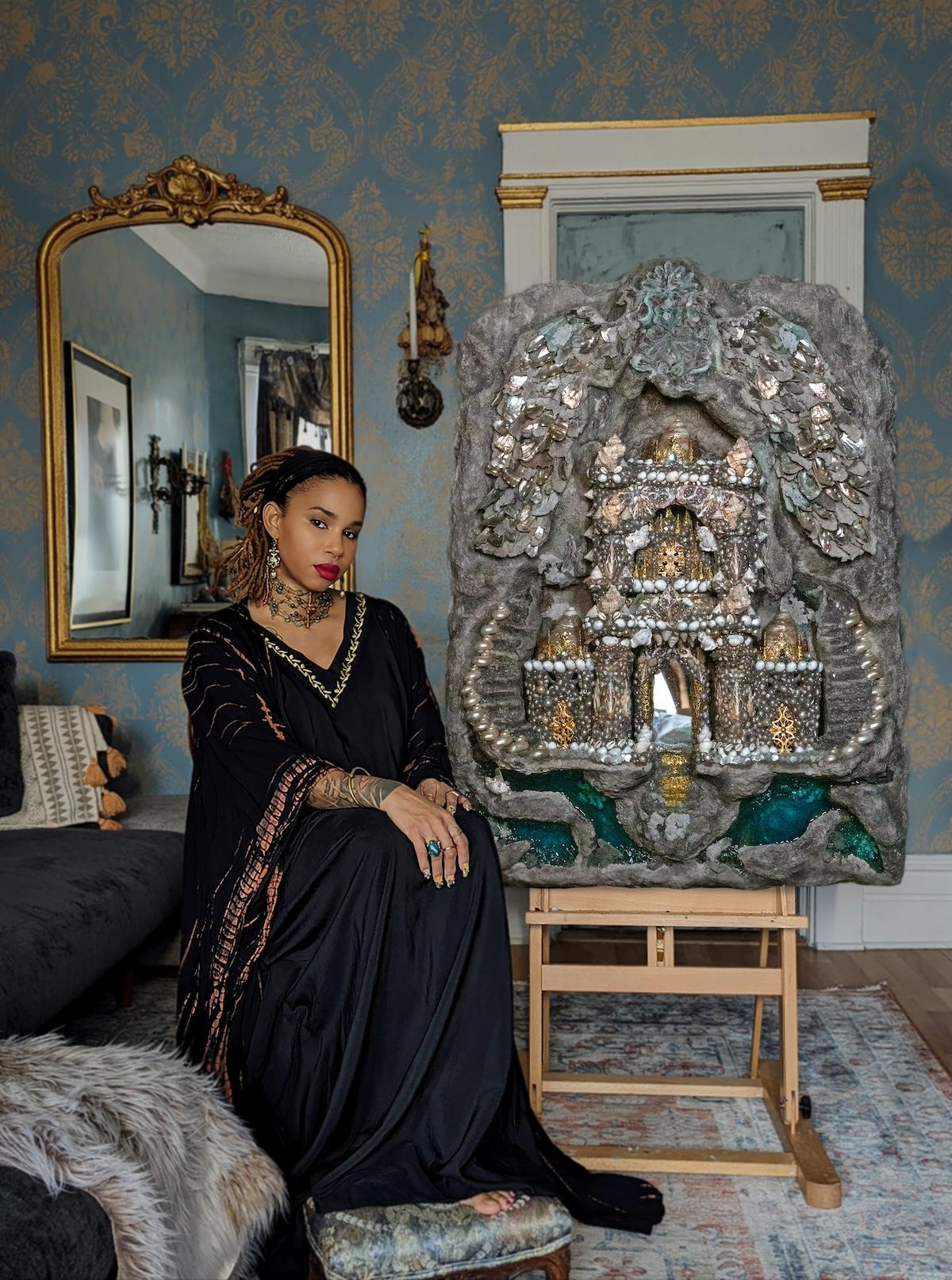 Fabiola Jean-Louise: Fashion, to me, is a language—one that communicates without words, carrying with it the power to exalt, to conceal, to declare. I was drawn to it not simply as adornment, but as a vessel of historical memory and resistance. Garments, especially those fashioned in the style of 18th-century European court dress, became a way to interrogate narratives of power, beauty, and Black erasure. My work uses the aesthetics of couture to seduce, only to later reveal the complex, often painful, truths woven into the seams of colonial history. The sculptural dresses I create from paper aren't just garments; they are reimagined armor, relics, and testimonies—embodiments of memory and ancestral presence.