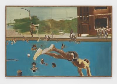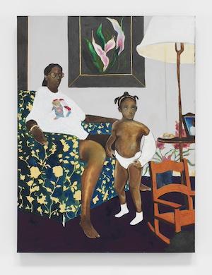 A scrappy Cooper Union dropout and former MOCA bookstore clerk, he depicts quotidian moments in paintings like “Single Mother with Father out of the Picture”, a girl with a cast on her arm next to her mom on the couch, and “Bad Boy for Life”, a woman spanking a boy bent over her lap.