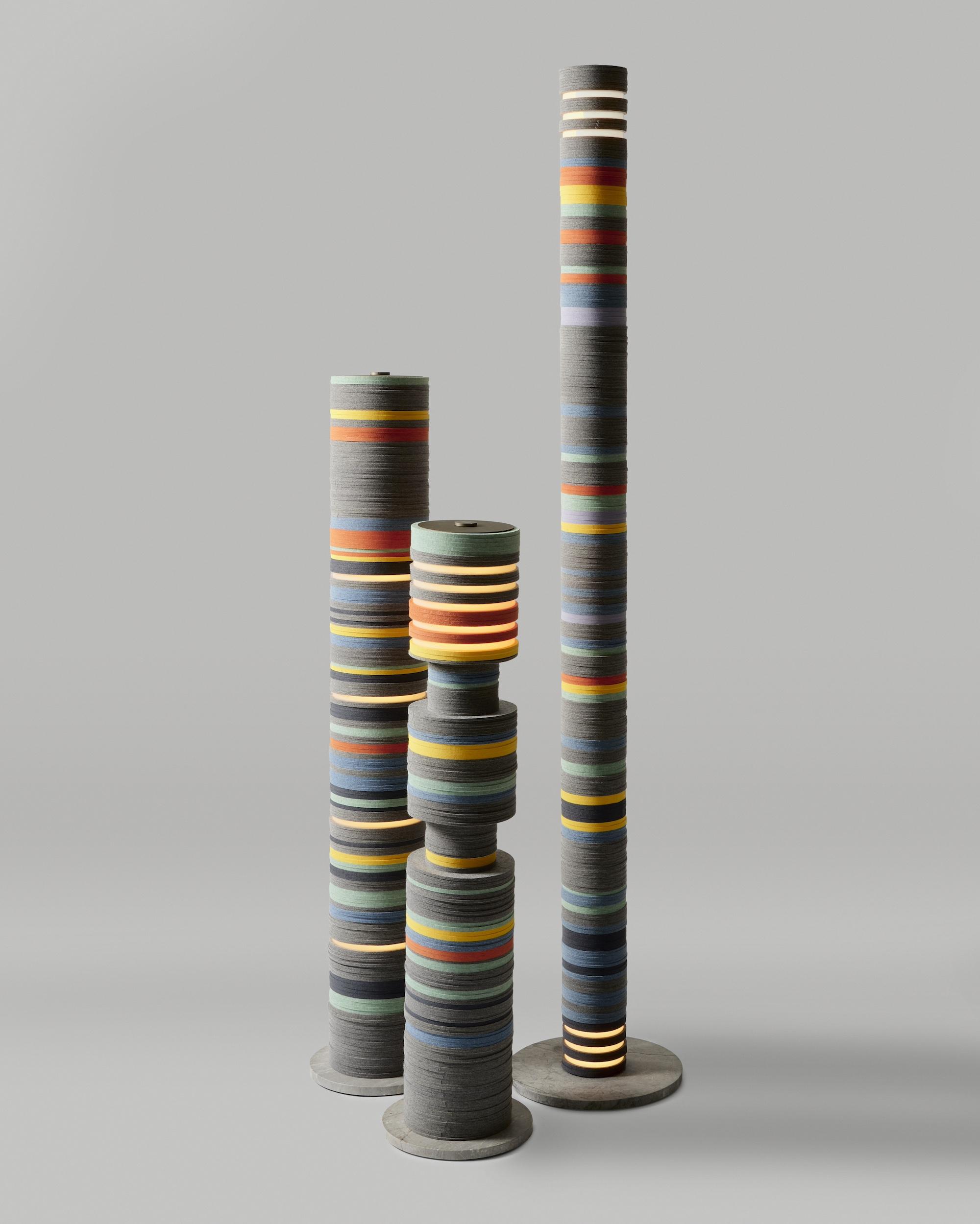 Some of the highlights that will be on view include: a new collection, Night CityScape by Stackabl, made with remnant felt and LED lighting, including three pendant lights and three illuminated totems designed by myself for Stackabl; Les 100, a large composition by mirror artist Kiko Lopez at nearly 7 by 7 feet, composed of 100 pieces of glass; a Bombola sofa designed by Georgis & Mirgorodsky; several monumental bronze works by Irish artist, Niamh Barry including On it Goes, In the Eyes Of, and Fouette II; a work by Rachel David, Pollinator Throne, made of patinated steel whose design is closely related to the large bench that the artist was commissioned to create for the Renwick Gallery at the Smithsonian American Art Museum in Washington; and a woven rattan round center table by Peeta Tinay.